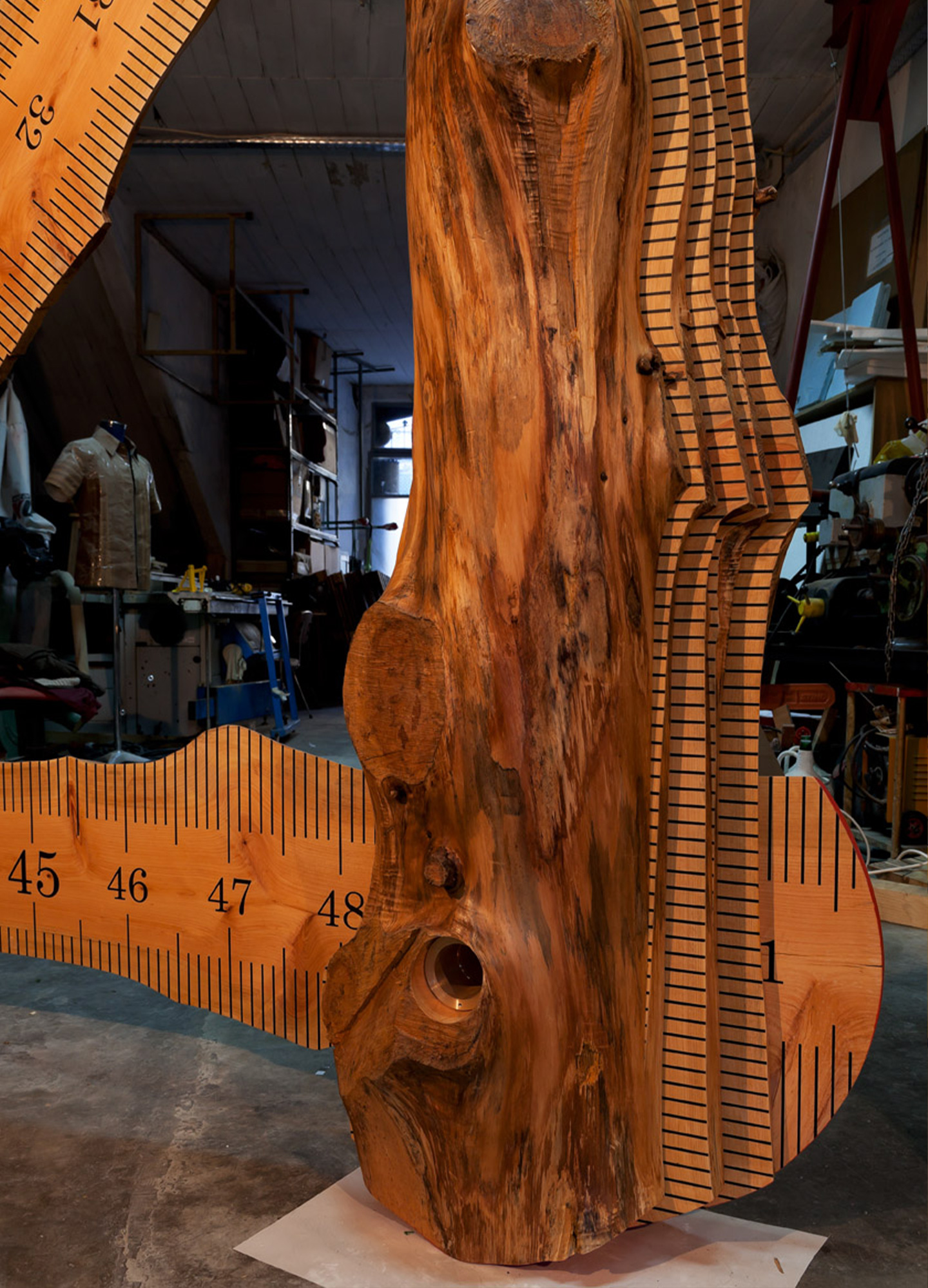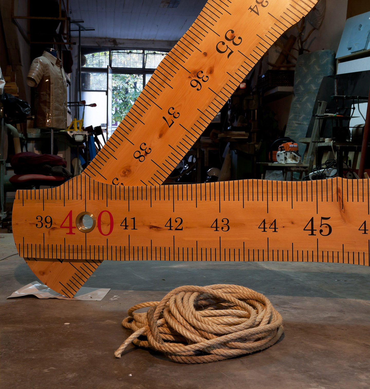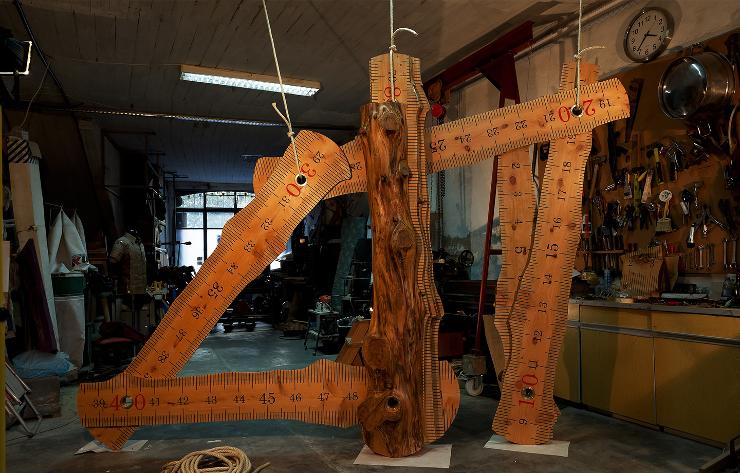 Madeira de Cedro, tinta plástica, bronze e sisal