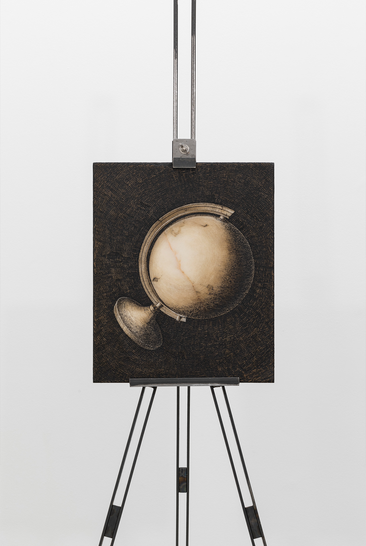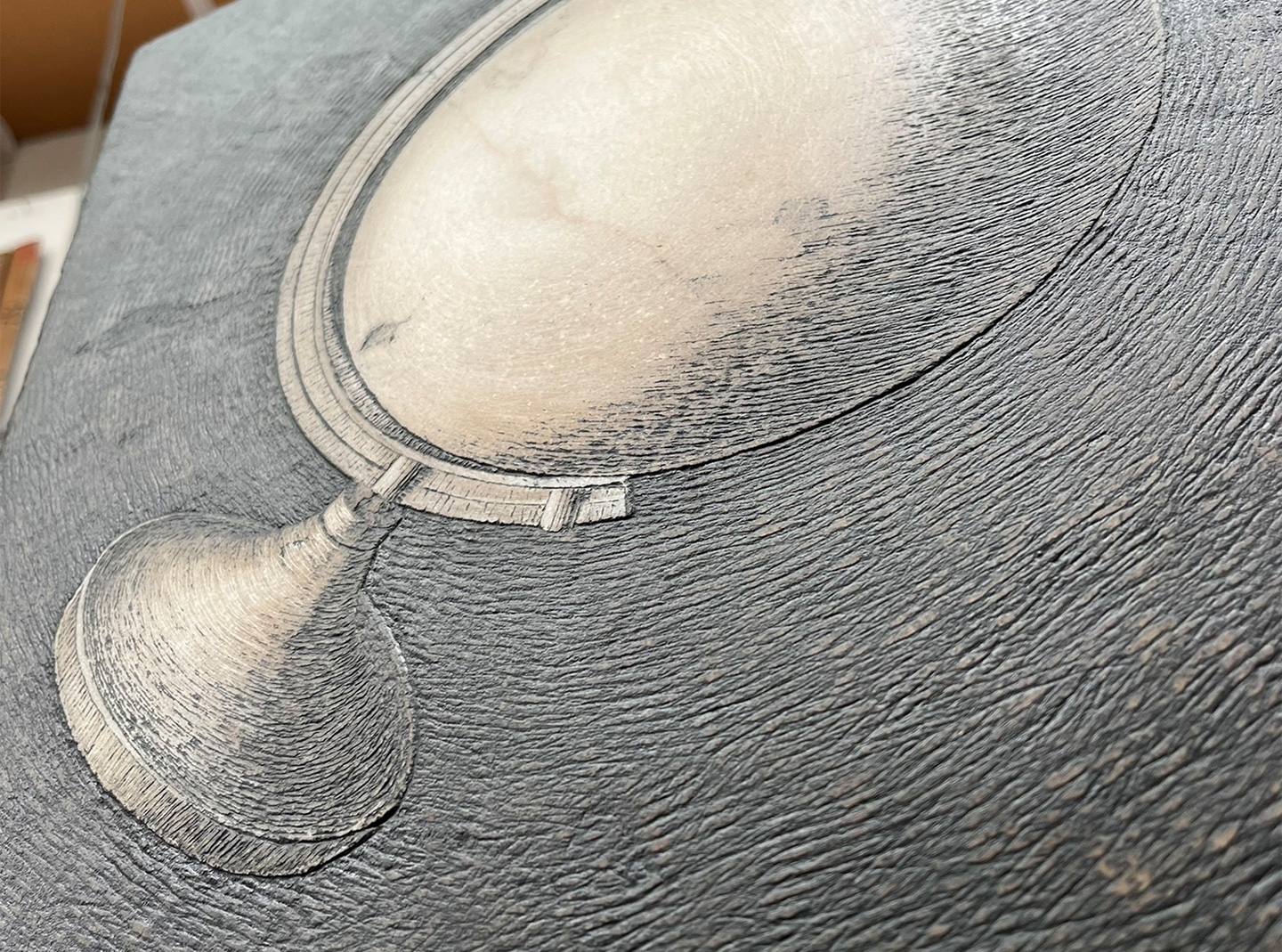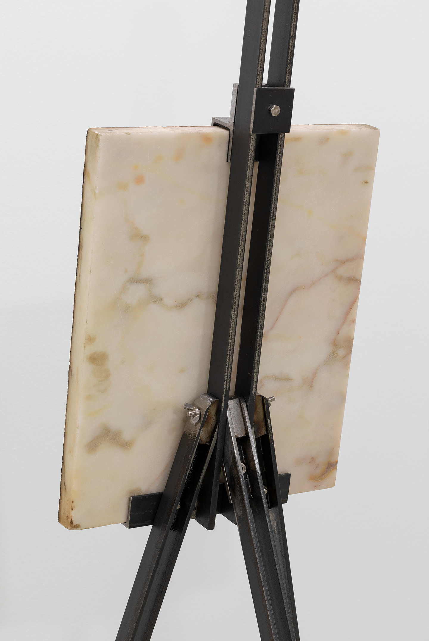 Aço e Mármore estremoz gravado e pintado com tinta acrílica e betume judaico